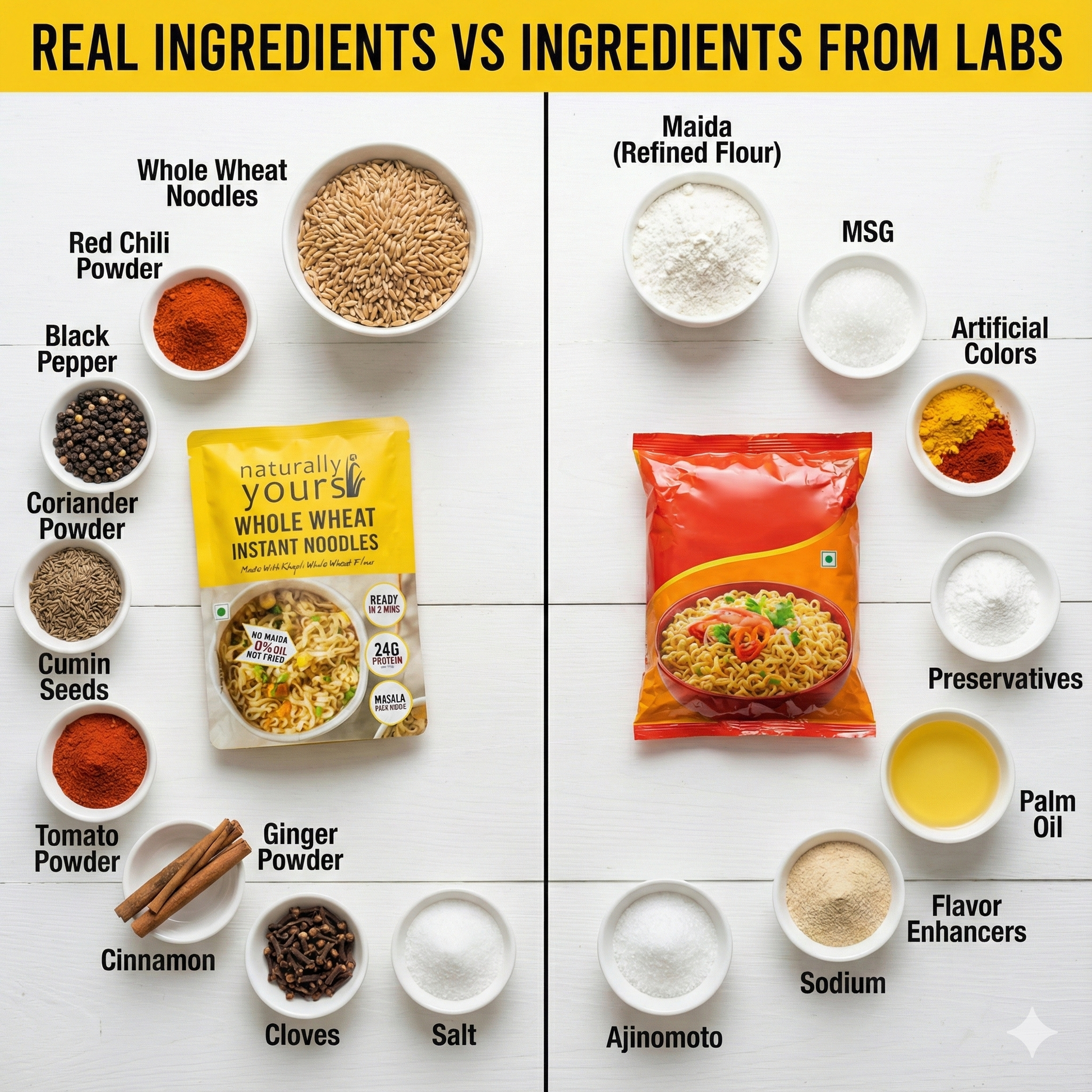 1. There is absolutely no maida/refined flour in our noodles which helps you to avoid the empty calories that are loaded in regular maida based noodles available in the market.